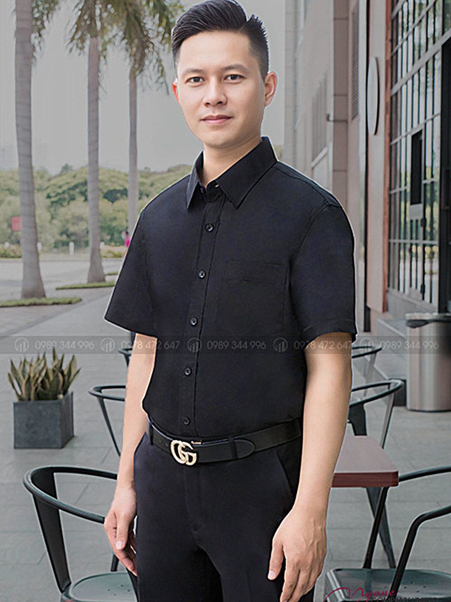 Áo Sơ Mi Nam Ngắn Tay Màu Đen