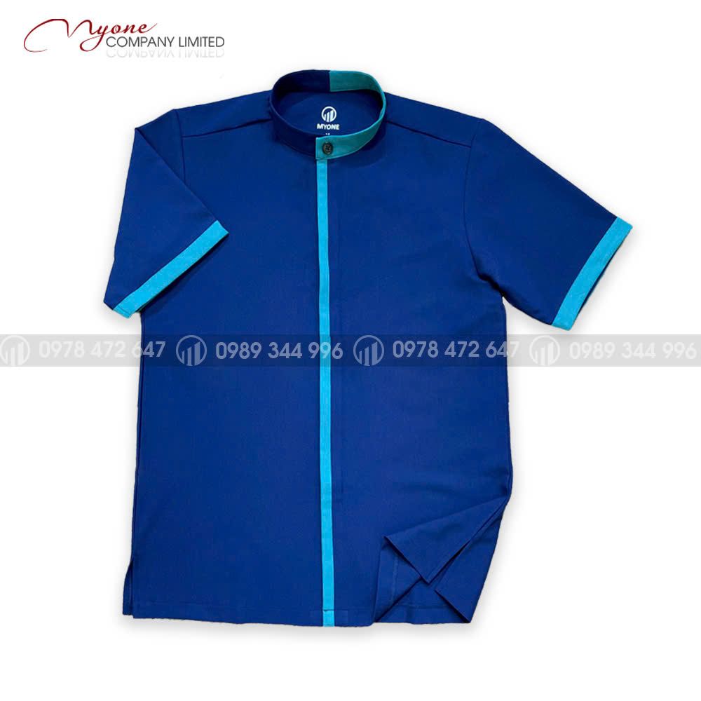 Chất liệu: Cotton lạnh kết hợp giữa sợi bông tự nhiên và sợi tổng hợp, giúp áo đồng phục có khả năng thấm hút mồ hôi tốt, thoát hơi nhanh, mang lại cảm giác mát mẻ, dễ chịu.