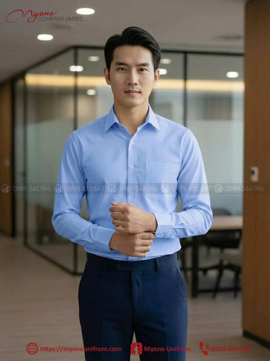 Thiết kế: Tay dài, Cơ bản, Đồng phục may sẵn phù hợp cho nhiều Doanh nghiệp, Văn phòng