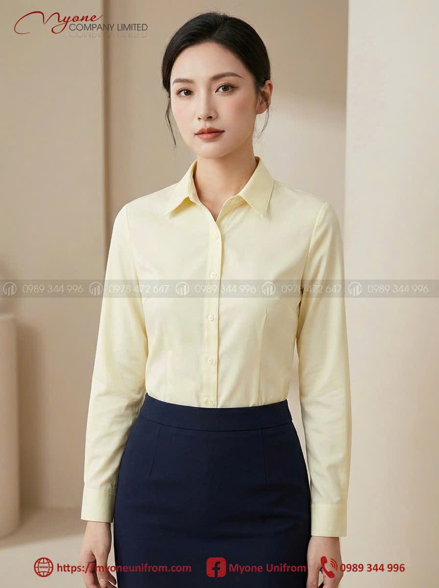 Sơ mi nữ dài tay- vàng nhạt